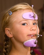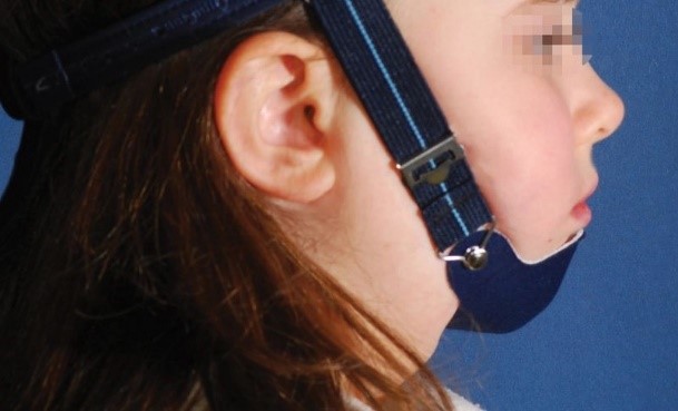 Aparato funcional extraoral para corregir clase III debida a que la mandíbula se encuentra adelantada respecto al maxilar (mandíbula grande).
