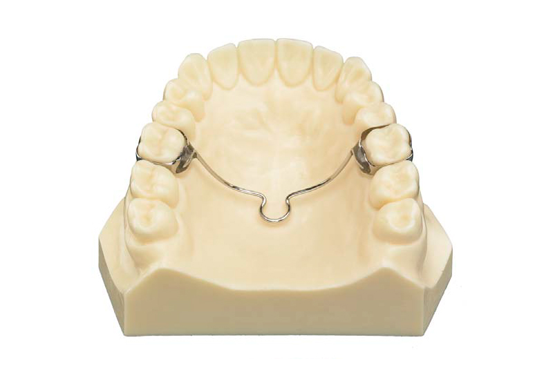 Arco soldado a bandas que nos permite un anclaje exacto. El principal uso es para mantener la dimensión de la arcada cuando los dientes están semierupcionados o totalmente erupcionados.
